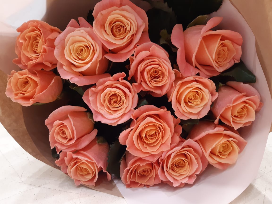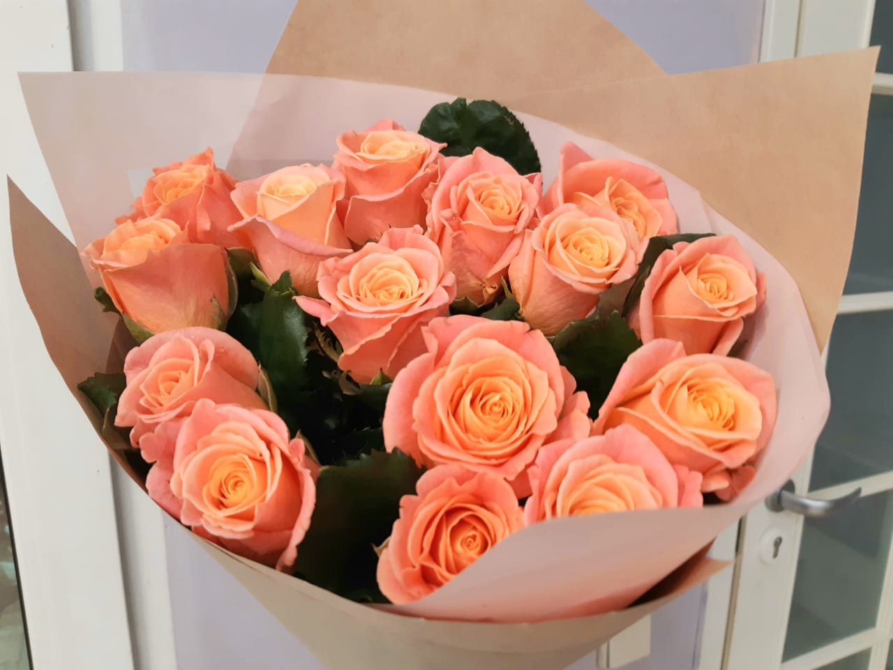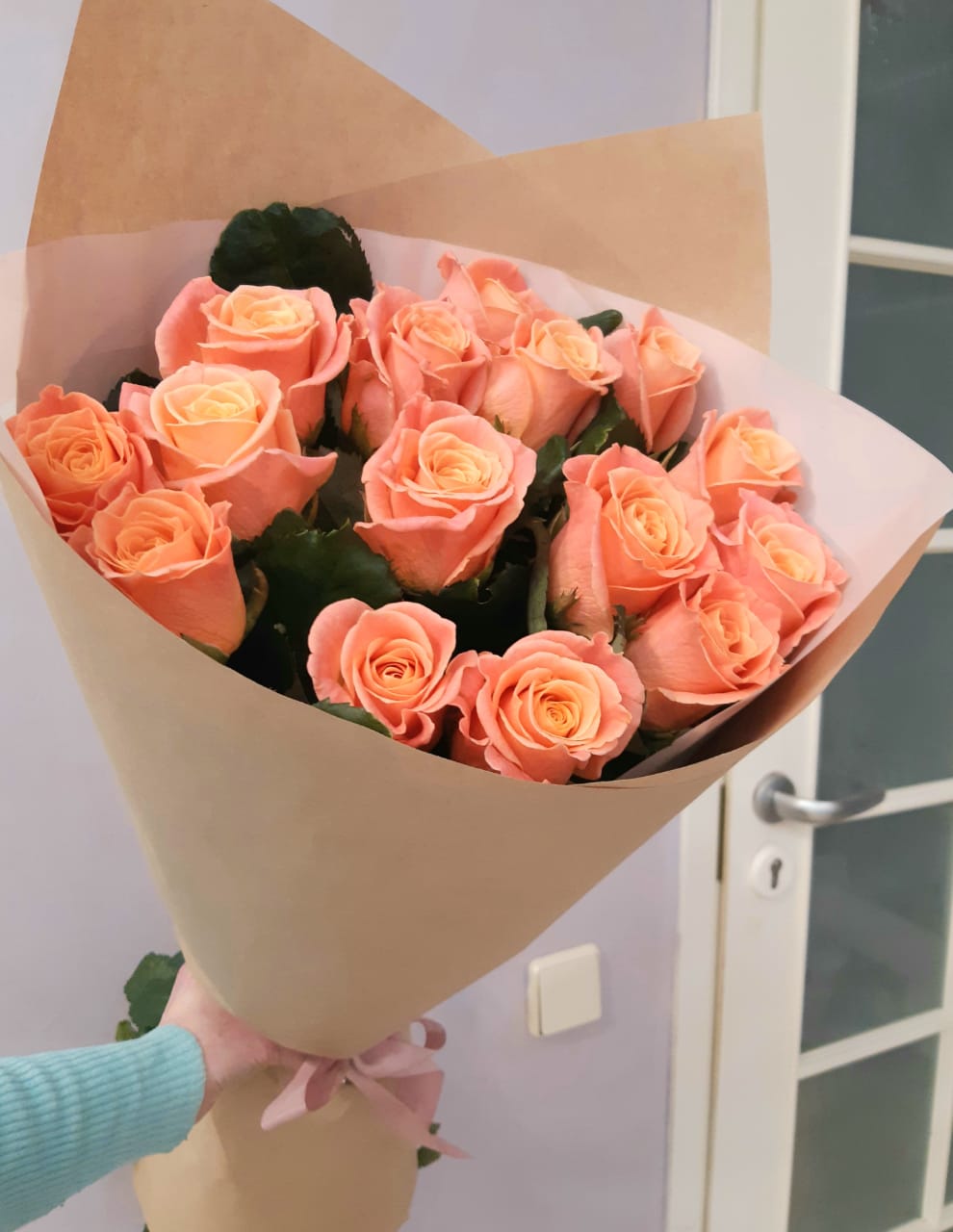 Нежный розово-персиковый оттенок лепестков создает ощущение тепла и света, наполняя пространство гармонией и уютом. Эти розы отличаются изысканной формой бутонов и тонким едва уловимым ароматом, который подчеркивает их утонченность. Букет станет элегантным подарком для выражения трогательных чувств и прекрасным дополнением праздничной атмосферы. Он идеально подойдет для романтического свидания, дня рождения или в качестве знака внимания близкому человеку. Идеально подходит для особых моментов, когда хочется подчеркнуть искренность и теплоту отношений.