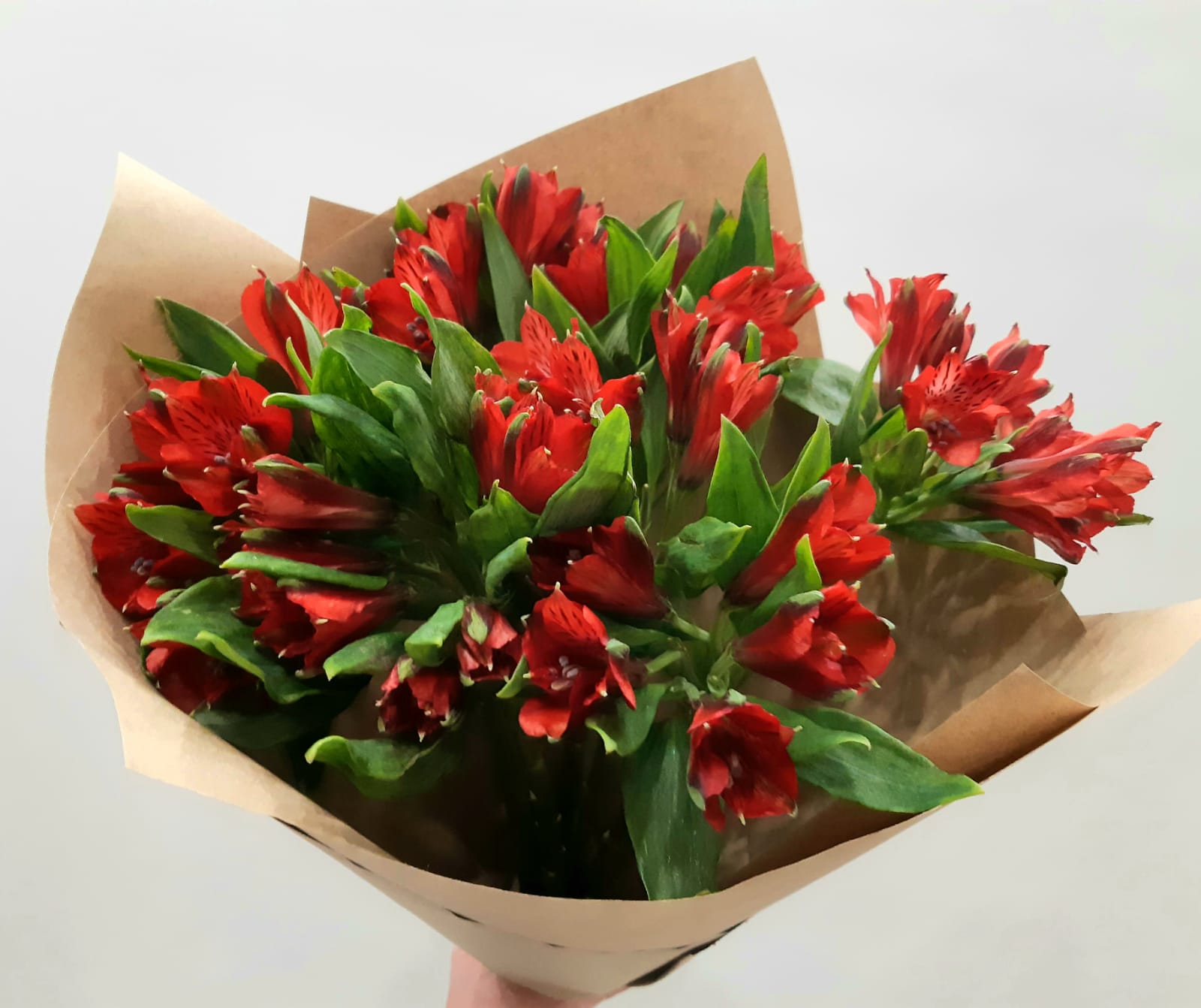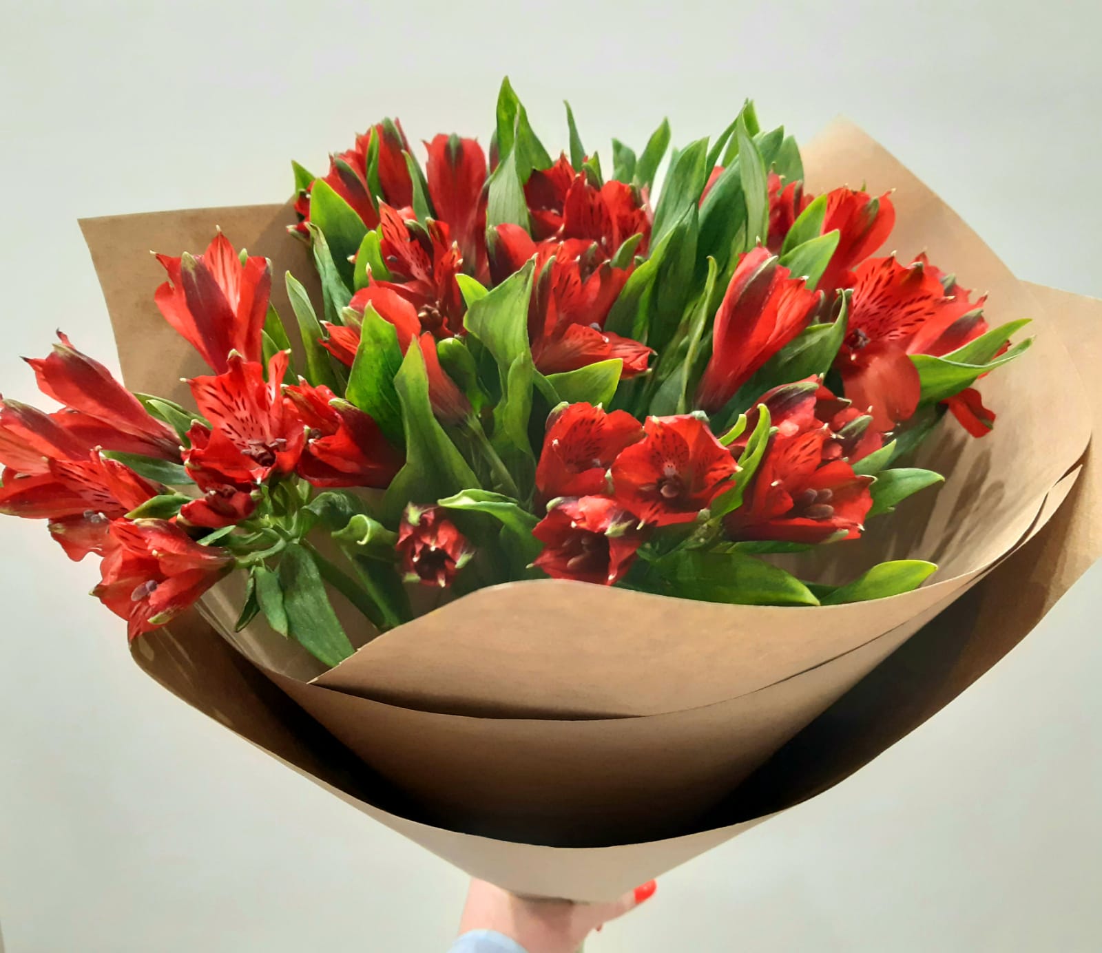 Изысканный монобукет, создающий атмосферу трогательной красоты и праздника. Семь нежных альстромерий с их утонченными лепестками и изящным рисунком собраны в гармоничную композицию, символизирующую добрые пожелания и восхищение. Каждый бутон раскрывается постепенно, даря долгую радость и напоминая о трепетных моментах жизни. Оформление в экологичную крафт-бумагу подчеркивает естественное очарование этих удивительных цветов, создавая современный и стильный образ.