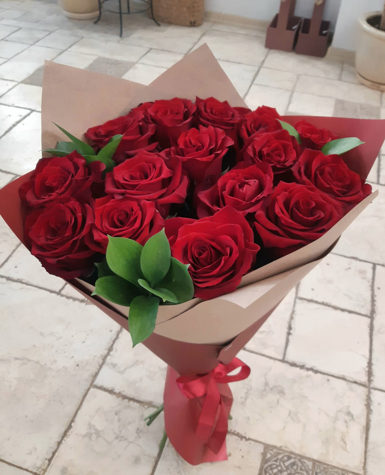 Изысканный монобукет, в котором роскошь бордовых роз Explorer раскрывается в лаконичном и стильном исполнении. Эффектные линии рускуса подчеркивают глубину оттенка и благородную форму бутонов, создавая гармоничный баланс между утонченностью и выразительностью. Идеальный выбор для особого момента, когда важно выразить искренние чувства без лишних слов, даря восхищение и радость.