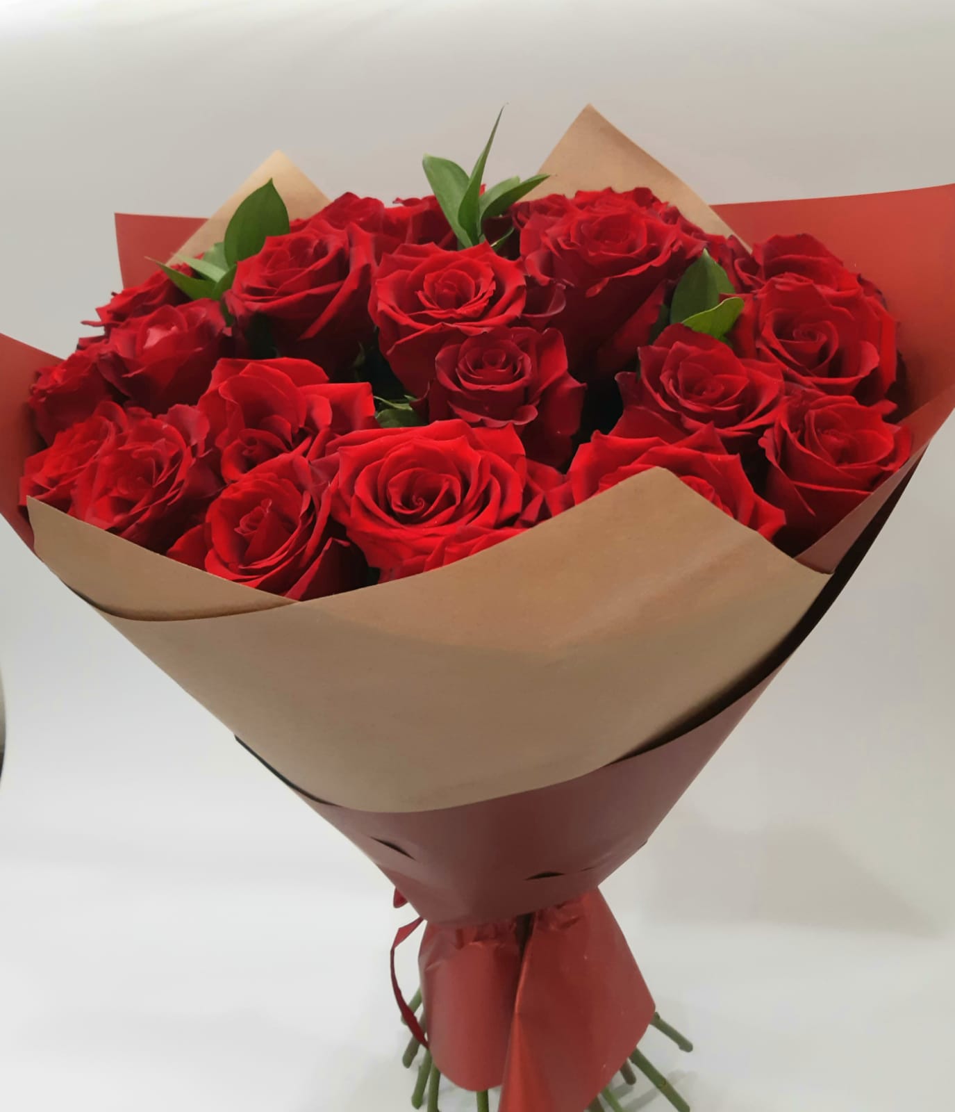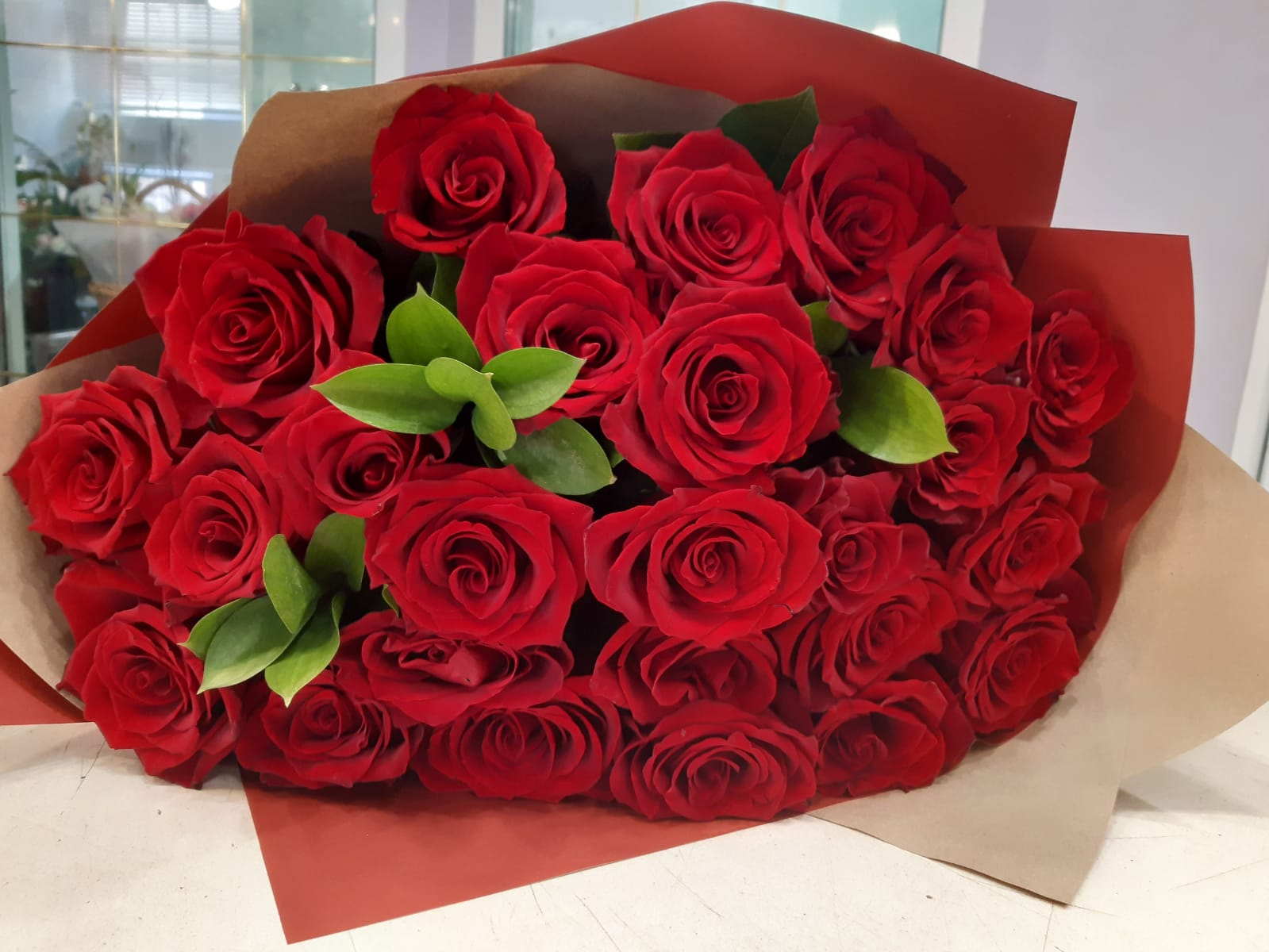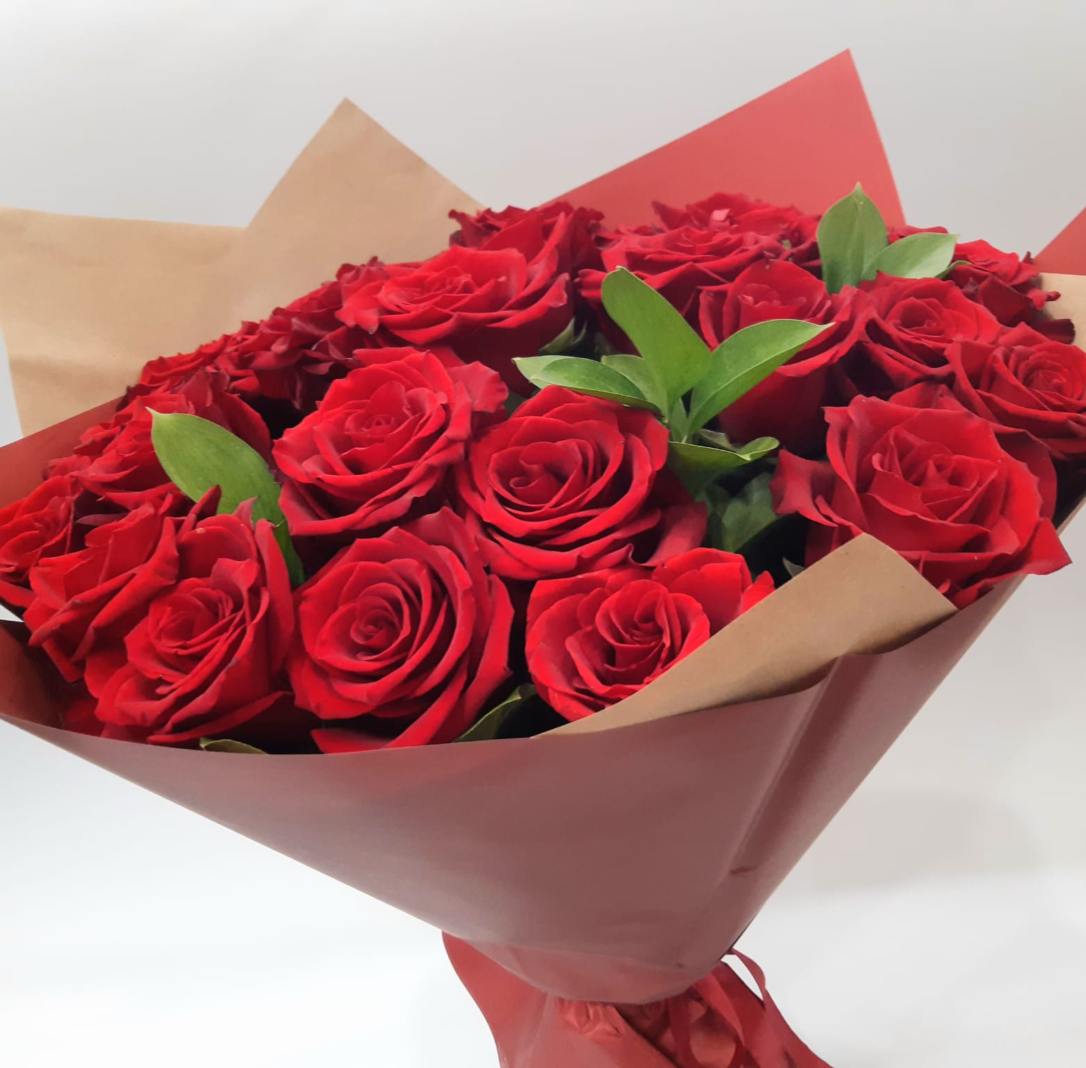 Изысканный монобукет из 25 роз Explorer благородного бордового оттенка. Глубокий насыщенный цвет и безупречная форма бутонов создают атмосферу роскоши и праздника, даря ощущение торжества. Обрамление из изящного рускуса подчеркивает объем и элегантность композиции, а упаковка в крафт-бумагу добавляет современный акцент. Этот букет станет прекрасным подарком для выражения искренних чувств и восхищения.