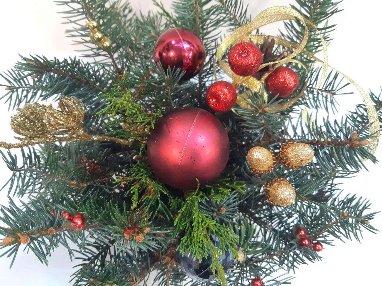 Важно: Для сохранения стиля и качества флорист может заменить элементы декора на аналогичные, сохраняя праздничную концепцию и новогоднее настроение композиции.