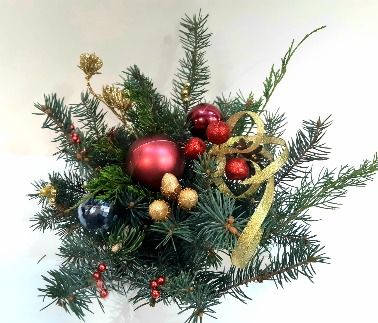Изысканная композиция из пушистого нобилиса в обрамлении праздничных ёлочных игрушек и декора станет прекрасным дополнением вашего интерьера. Удобная форма и флористический оазис обеспечивают невероятную долговечность — хвоя сохраняет свежесть и аромат несколько недель, наполняя дом атмосферой праздника! Для поддержания безупречного вида достаточно поливать оазис небольшим количеством воды примерно раз в 5-6 дней, чтобы композиция радовала своей красотой весь зимний сезон.