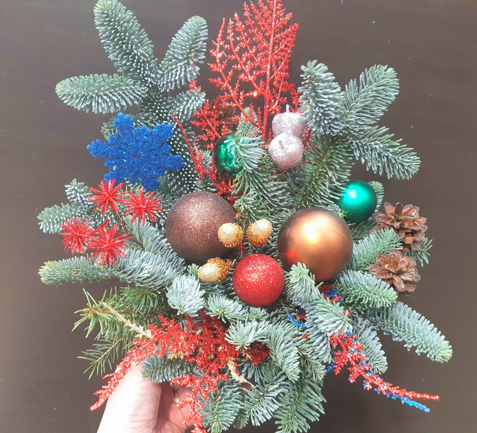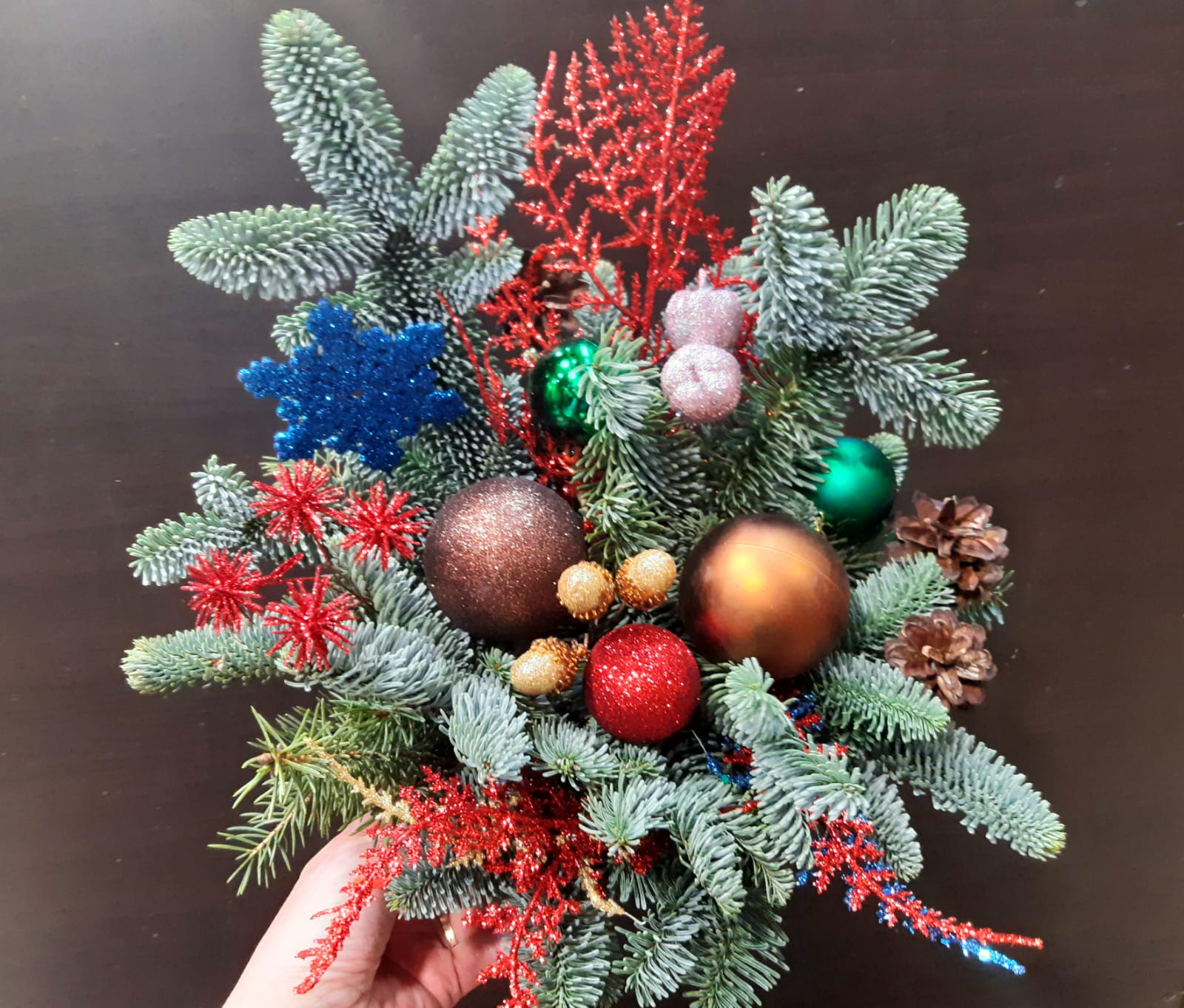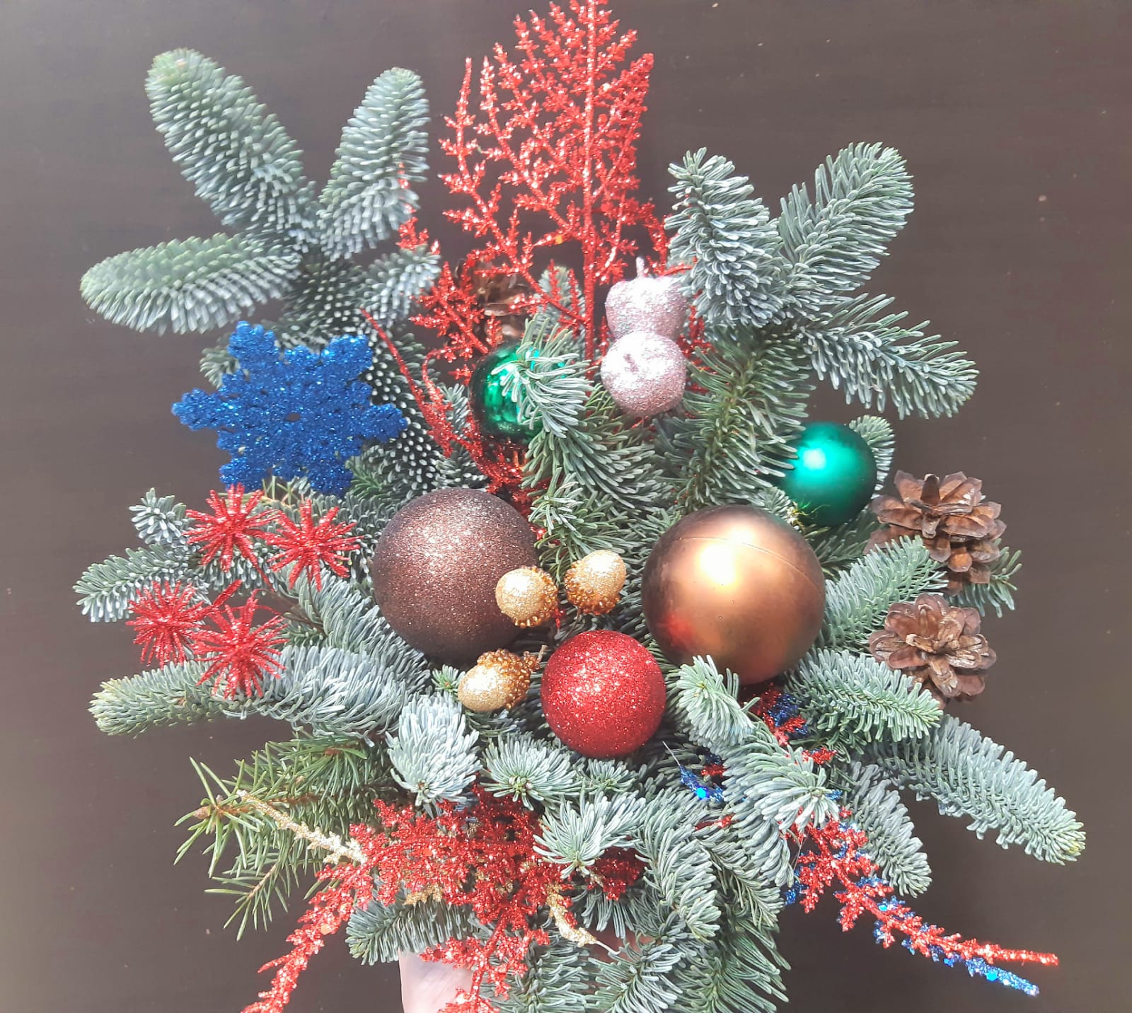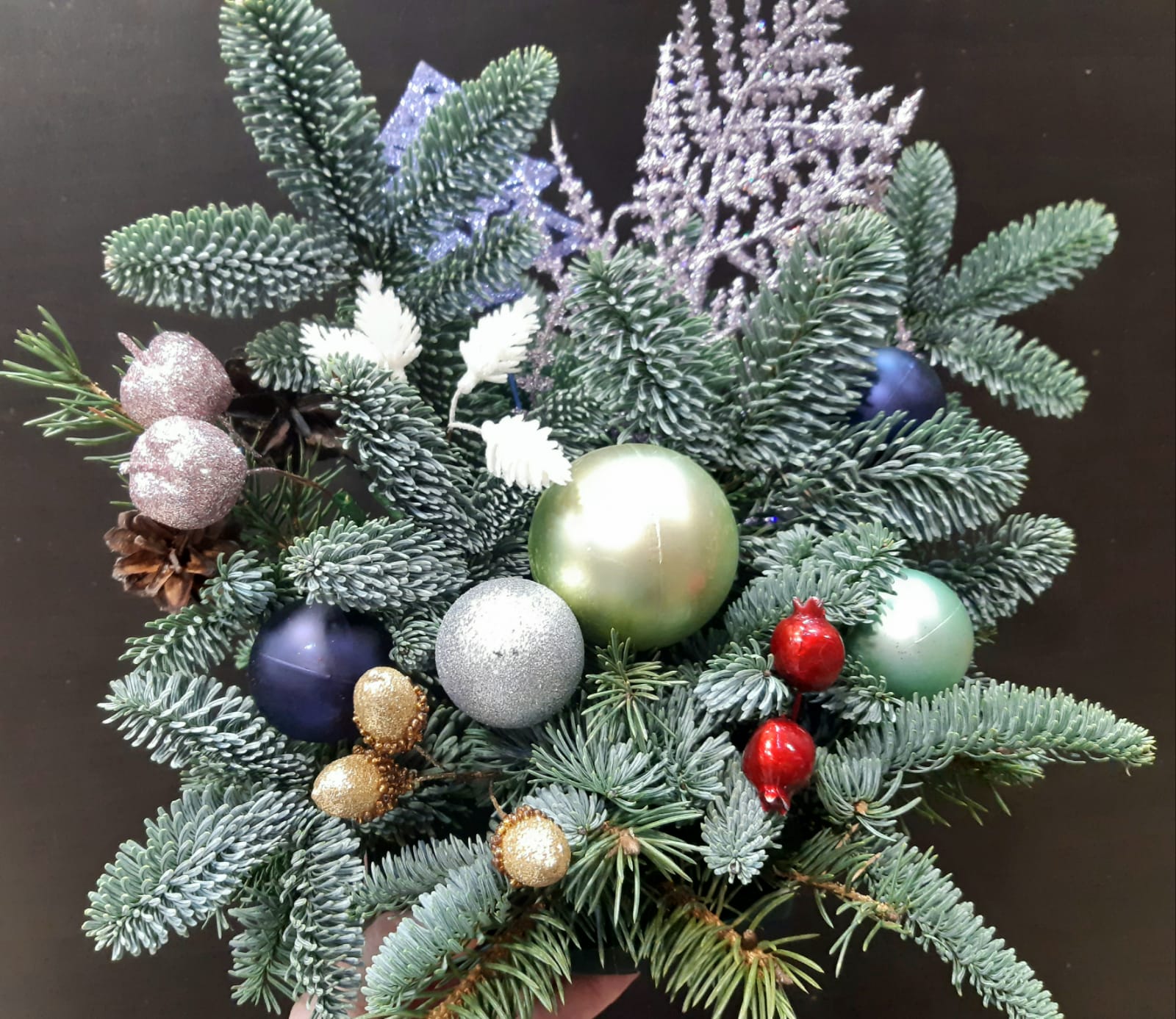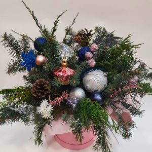 Изысканная композиция из пушистого нобилиса с праздничными ёлочными игрушками и декором создаёт атмосферу уютного зимнего чуда. Практичный и невероятно красивый подарок, который станет изюминкой вашего интерьера, наполнив пространство волшебным ароматом хвои. Благодаря использованию флористического оазиса ветки сохраняют свежесть и упругость несколько недель, даря радость throughout все праздники. Для поддержания безупречного вида достаточно умеренно поливать композицию раз в 5-6 дней, обеспечивая долговечность этого изящного украшения. Идеальное решение для новогоднего подарка близким или корпоративного поздравления.