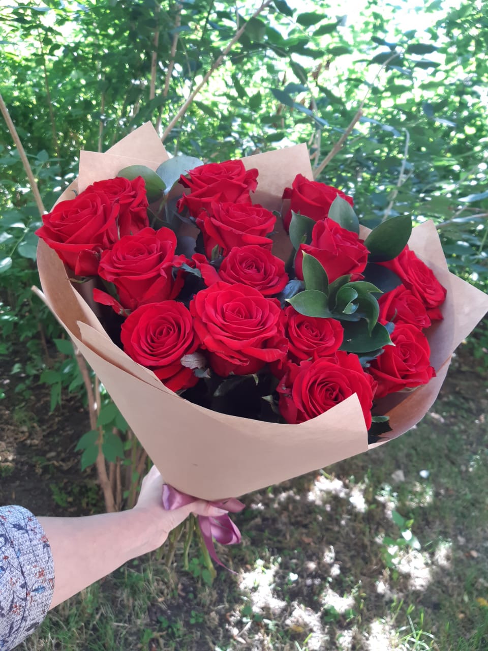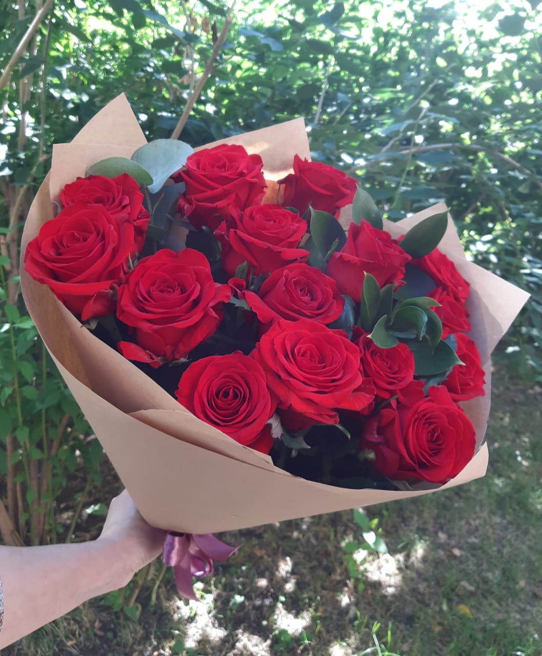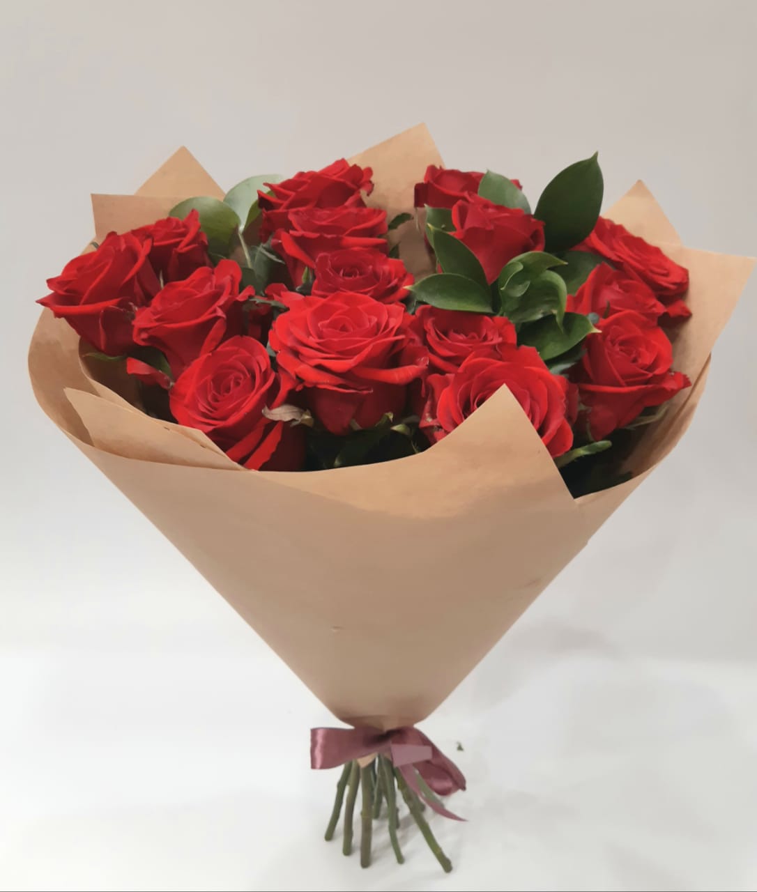 Изысканный монобукет из 15 благородных роз Рэд Игл насыщенного бордового оттенка. Глубокий цвет бархатистых бутонов символизирует восхищение и элегантность, создавая атмосферу торжества и роскоши. Обрамление из рускуса и декоративной зелени подчеркивает богатство оттенков и придает композиции объем, а упаковка в крафт-бумагу добавляет современный акцент. Этот букет станет ярким подарком для особого случая, выражая силу чувств и внимание к деталям.