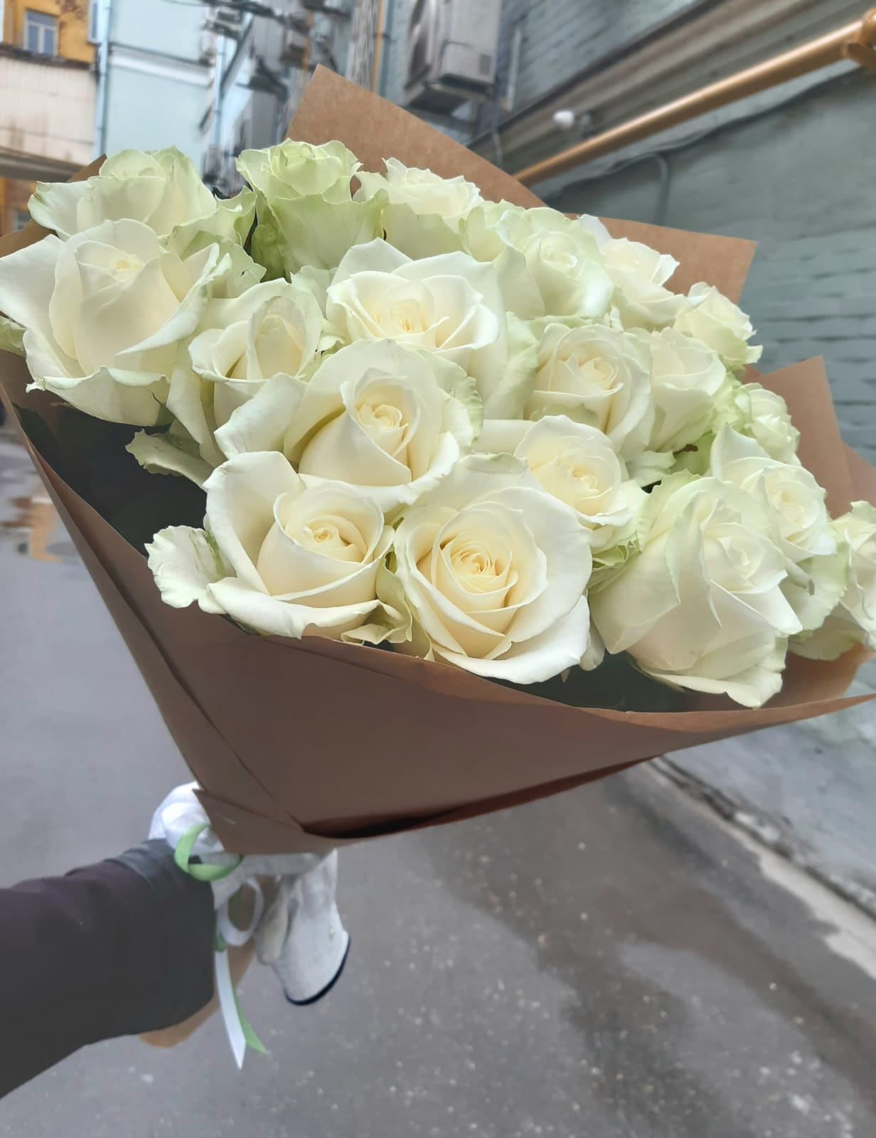 Изысканный монобукет из 19 белоснежных роз Аваланж. Роскошные бутоны с безупречной формой символизируют чистоту, элегантность и искренние чувства, а их бархатистые лепестки переливаются перламутровым сиянием. Оформление в крафт-бумагу подчеркивает благородную простоту и timeless-шарм этой классической композиции, создавая образ утонченной роскоши. Каждая роза тщательно отобрана для сохранения безупречной гармонии и стиля, делая этот букет идеальным выражением глубоких чувств и особого отношения.