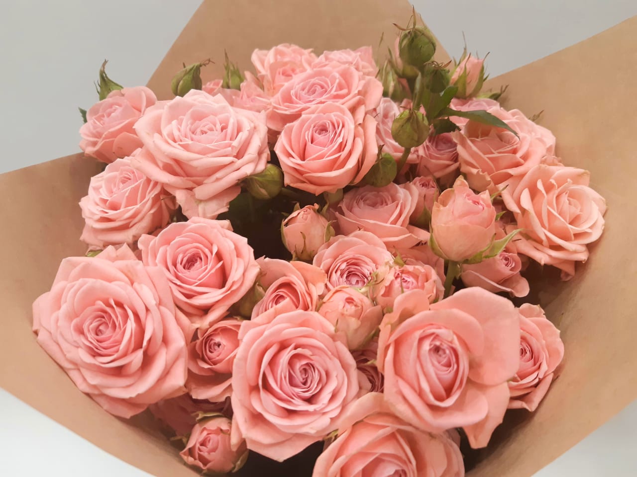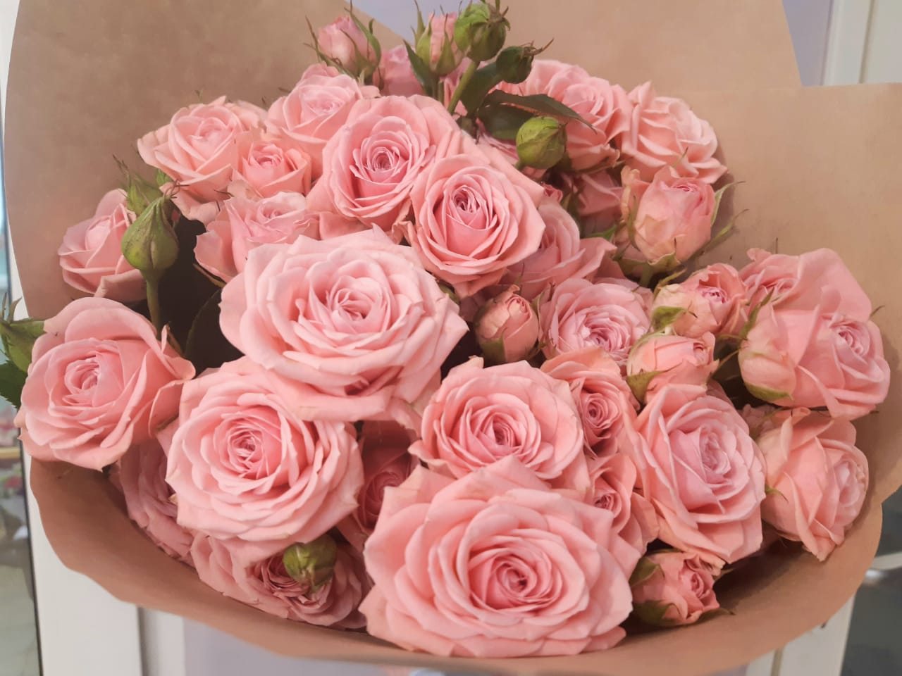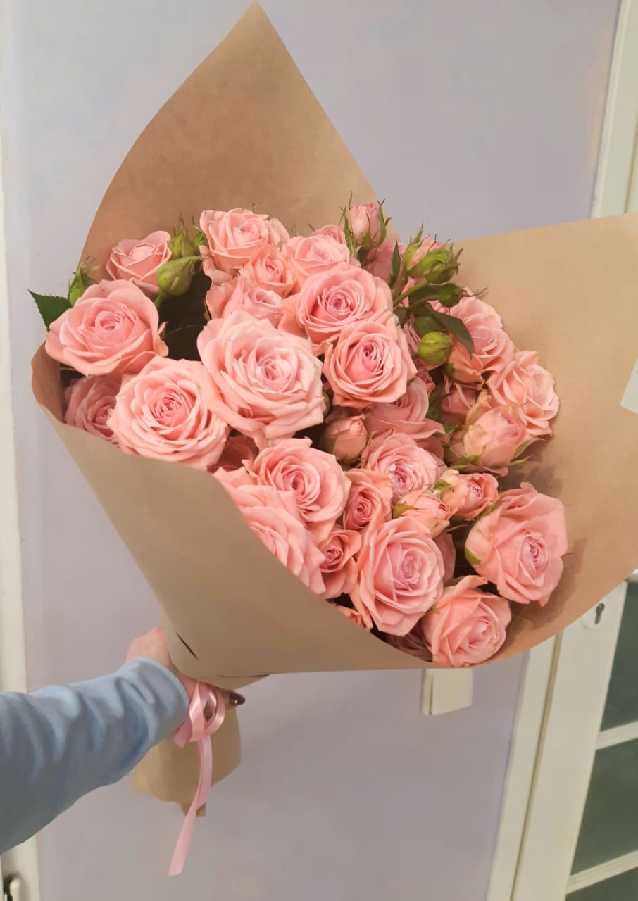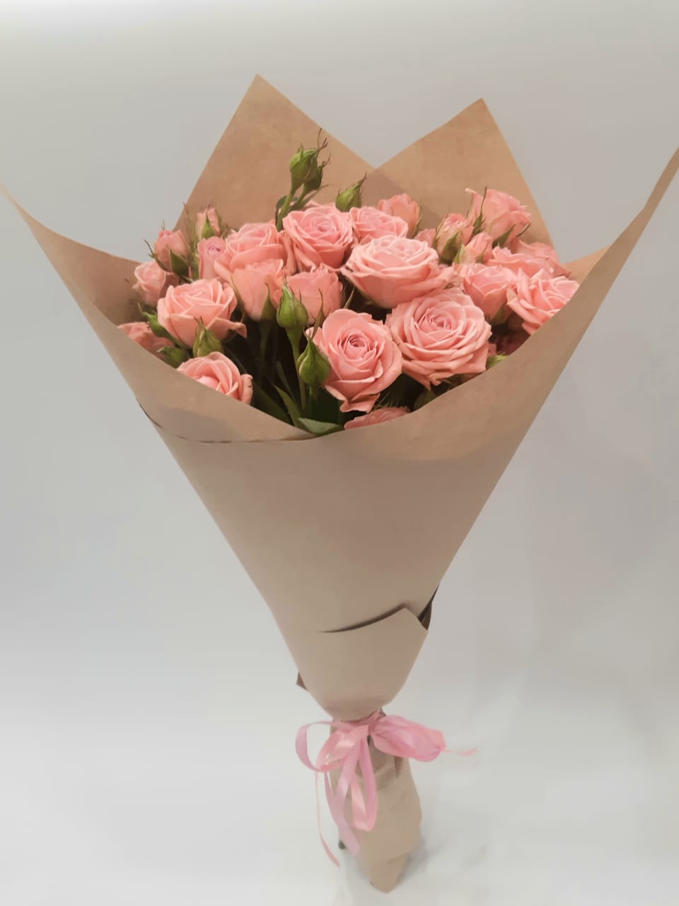 Очаровательный монобукет из 9 нежно-розовых кустовых роз. Пышные соцветия создают эффект воздушного облака, а лаконичное оформление подчеркивает изящество каждого бутона. Нежные лепестки, переливающиеся перламутровыми оттенками, символизируют трепетность чувств и восхищение красотой того, кому предназначен этот подарок. Идеальный выбор для создания романтического настроения и трогательных моментов, который станет элегантным выражением ваших искренних эмоций.