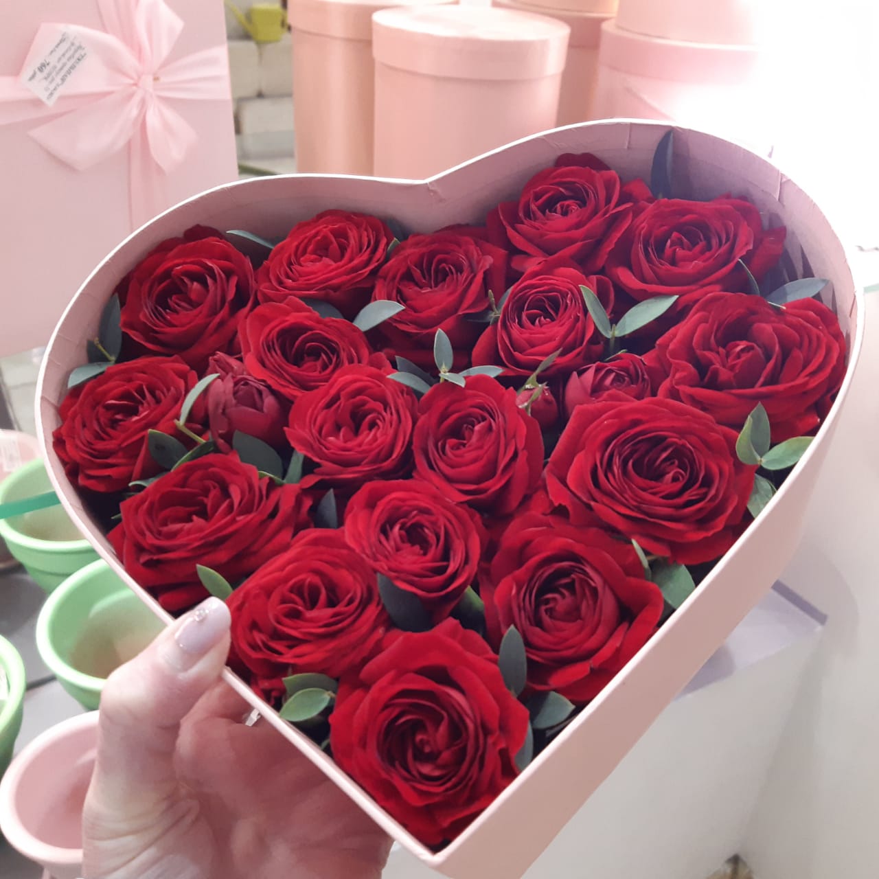 Изысканная композиция в коробке, сочетающая в себе красоту и практичность. Нежные кустовые розы и воздушный эвкалипт в стильной коробке станут идеальным подарком для особого момента. Благодаря использованию флористического оазиса цветы сохраняют свежесть до 2 недель, даря радость без лишних хлопот — не нужно искать вазу, менять воду или подрезать стебли. Достаточно поливать оазис небольшим количеством воды раз в 4-5 дней по мере его высыхания.