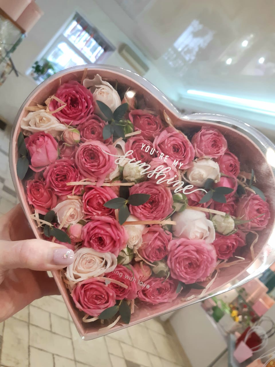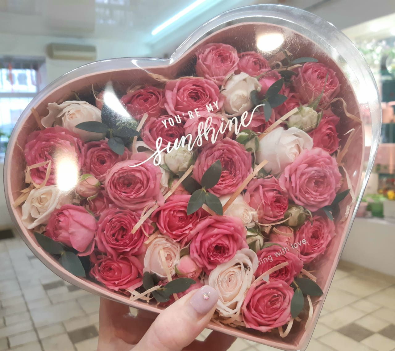 Очень красивый и удобный подарок. Цветы в оазисе стоят намного дольше и исключает поиск вазы, смену воды, подрезку цветов. Освежать , поливать немного композицию нужно по мере высыхания оазиса (примерно раз в 4-5 дней).