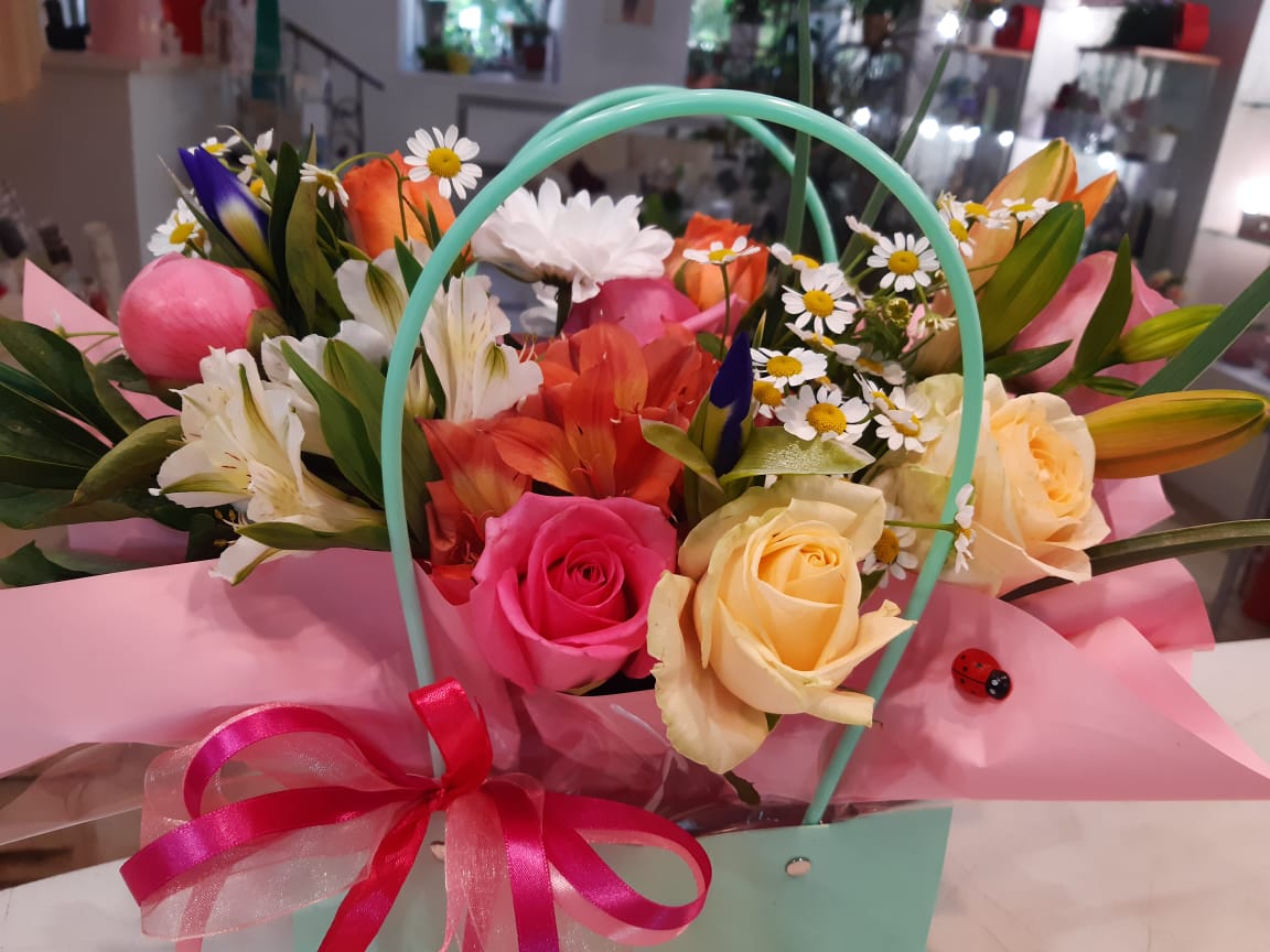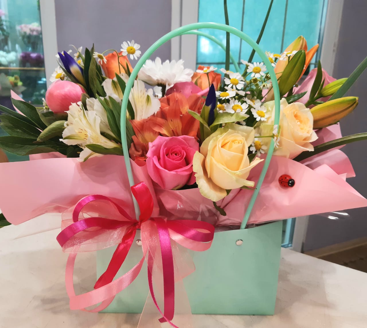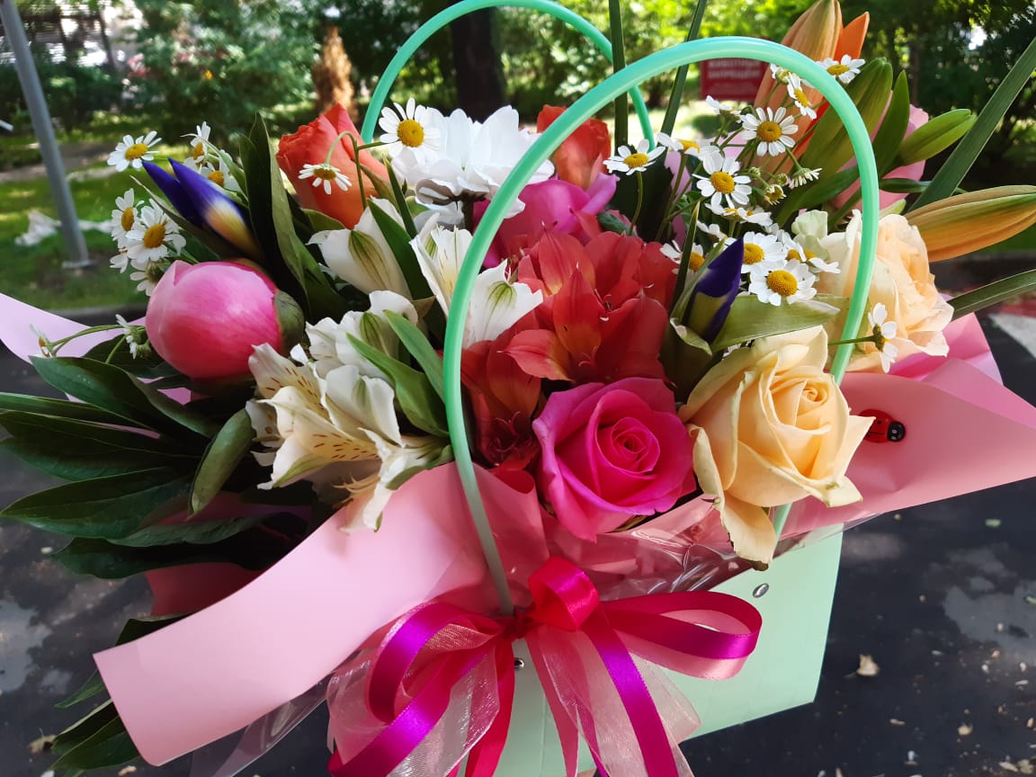 *Некоторые цветы в букете сезонные, и могут быть заменены на аналогичные, по усмотрению флориста. Возможно использование цветов и упаковки другого цвета или сорта!»